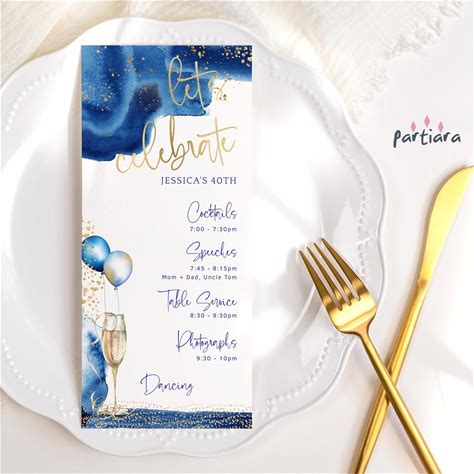 Blue Birthday Program Template, Navy Blue Dinner Party Table Programs Printable For Men Or Ladies Events, Editable Digital Download P260