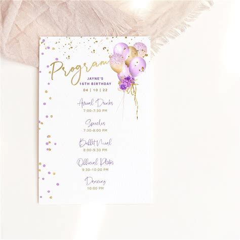 Ladies Birthday Party Program Template Printable Lilac Pur…