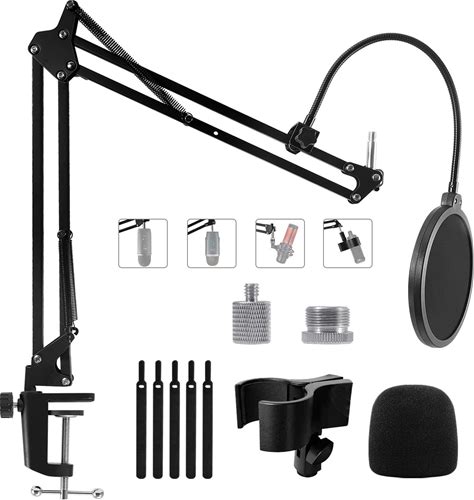 Wall Mount QuadCast Boom Arm Stand with Mic Cover Foam and Table Mount ...