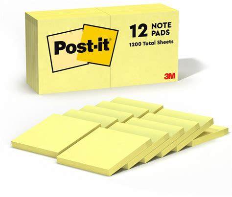 Post-it Notes Canary Yellow, Pack of 12 Pads, 100 Sheets per Pad, 76 mm ...