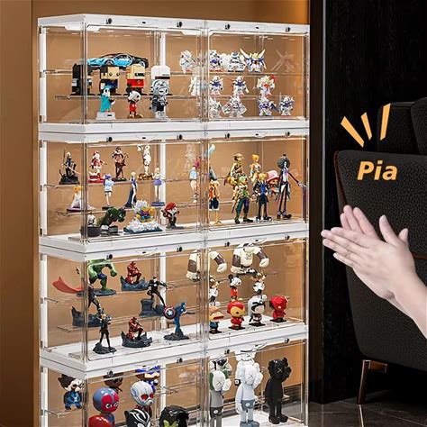 Walnootkleurige Opbergdoos Met Ring-LED-Verlichting Voor POP-Speelgoed, Doorzichtige Vitrinekast Van