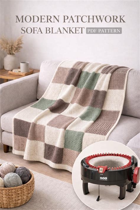 Modern Patchwork Sofa Blanket Knitting Pattern | Addi Express King Size | Machine Knit Throw Blanket PDF