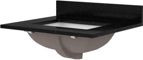 37 in. W X 22 in. D X .75 in . H Engineered Quartz White Rectangular Single Sink Bath Vanity Top In Black Galaxy
