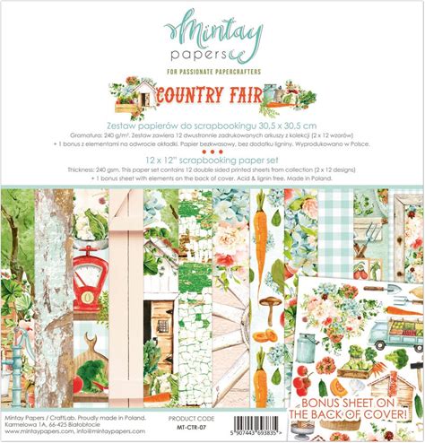 12 X 12, 12 Sheets, Collection COUNTRY FAIR, Mintay Paper, Sheets For Cutting, Scrapbooking Paper Set, Card Stock