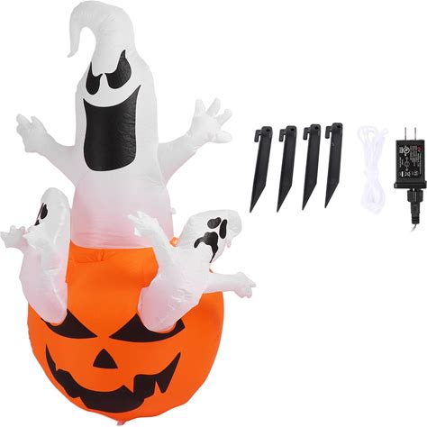 Halloween Inflatable Three White Ghost With LED Light 6ft Halloween Blow Up Pumpkin Ghost Yard