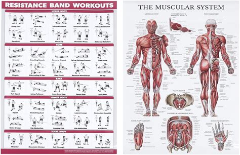 Resistance Band Workout Muscle System Anatomy Poster Set Effective Full Body Exercise Clear Images