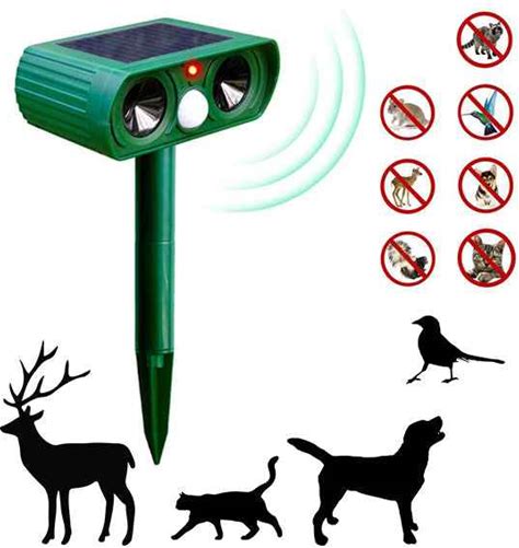 Solar Ultrasonic Animal Repellent Outdoor Deer Repellent Devices Waterproof Cat Deterrent With Flash Light Motion Sensor To Keep Squirrel Raccoon