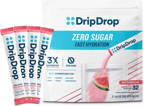 Dripdrop Sugar Free Hydration Packets - Zero Watermelon - Single Serve Electrolytes Powder Drink Mix - Non-GMO, Gluten Free, Vegan - 32 Sticks