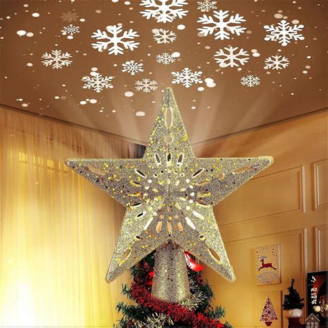 Christmas Tree Topper, 3D Rotating Light Up Christmas Tree Star With Star Shape Projector Lamp For I
