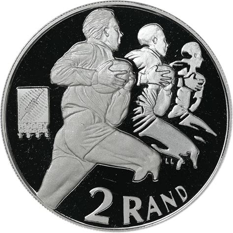 SOUTH AFRICA 2 Rand 1995 Sterling Silver 1Oz Proof 'Rugby World Cup'