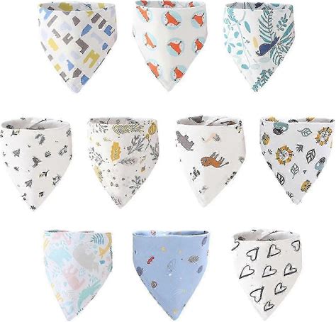 10-Pack Baby Dribble Bibs - Adjustable Snap Closure, 100% Cotton (0-36 Months)