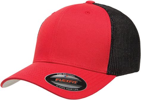 Flexfit 6511 Adult 6-Panel Trucker Hat In Red/ Black | Polyester By Ninja Transfers