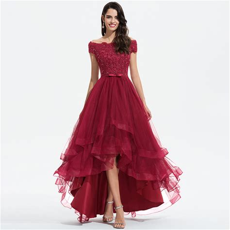 JJ's House Evening Dress Burgundy Strapless Asymmetrical Off The Shoulder A-Line 2026