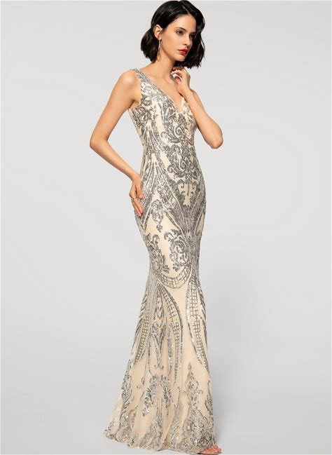 JJ's House Evening Dress Yellow Sleeveless Long V-Neck Sheath Sequin 2026