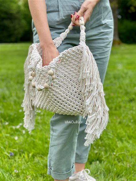 Macrame Handbag PDF Pattern, DIY Macrame Boho Purse, Macrame Shopping Bag Tutorial, How To Macrame Bag