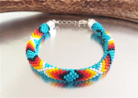 DIY KIT Bead Crochet Colorful Native Necklace Lanyard, Rope Jewelry Pattern, Kit To Craft Tribal Style Necklace, Beadweaving Crafter Gift