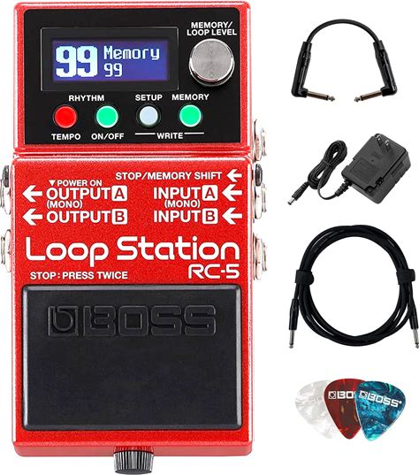 Boss RC-5 Loop Station Bundle With Gearlux Power Supply, Instrument Cable, Patch Cable, And Picks