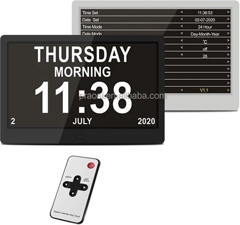 Pros 10" Large AM PM Digital Calendar Day Clock Bedroom Wall Day Date Clock Elderly Seniors Dementia Alzheimer's Remote Control