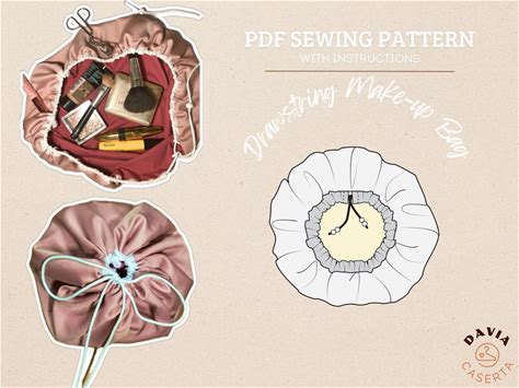 DRAWSTRING Cosmetic Makeup BAG Pdf SEWING Pattern With Instructions, Digital Download Printable Learn To Sew Makeup Pouch Pattern