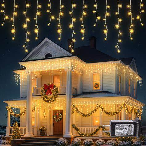 Hopolon 33ft 360L LED Christmas Icicle Lights Outdoor Waterproof,8 Modes Plug In Curtain String Lights With 60 Drops,Christmas Lights For Wedding,