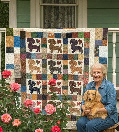Heirloom Dachshund & Hearts Patchwork Quilt - One-Of-A-Kind Treasure