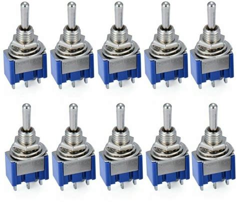 10 Pcs Toggle Switch MTS-103 3 Pin ON/OFF/ON PDT 6A 125VAC/3A 250VAC Mini Switch Lever Switch Blue S
