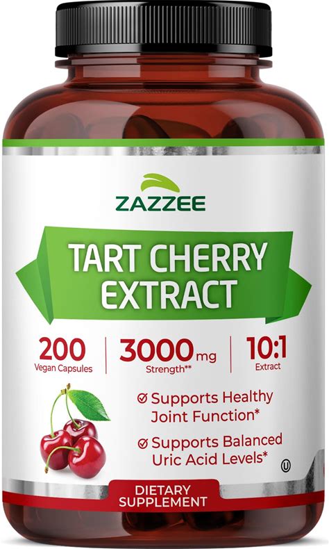 Zazzee Tart Cherry 10:1 Extract, 3000 Mg Strength, 200 Vegan Capsules, 6+ Month Supply, Certified Kosher, Concentrated And Standardized 10X Extract,