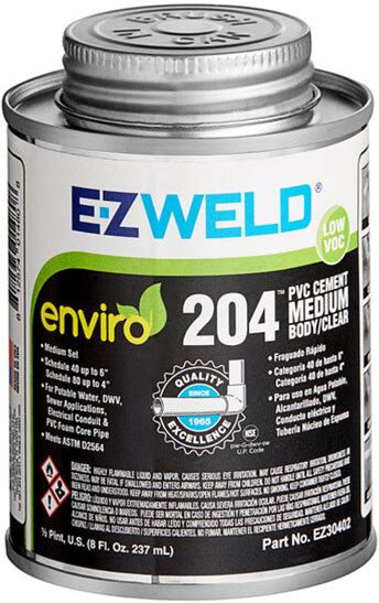 E-Z Weld EZ20402N 8 Oz. Clear Medium Body PVC Cement