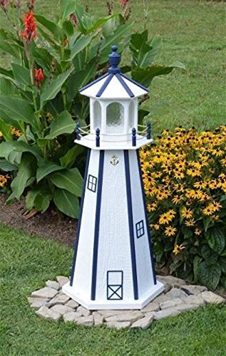Backyard Crafts Amish-Made Lighthouse In White With Navy Trim, 48" Tall