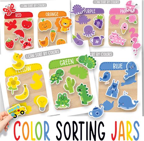 11 Color Matching Jars, Color Sorting Jars, Color Sorting Game, Color Matching, Color Activity, Learning Colors, Color Matching Printable