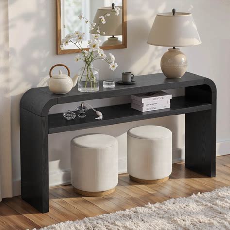 59'' Console Table With Curved Waterfall Frame And Wood Beads, Entryway Table For Hallway, Living Room, Or Office