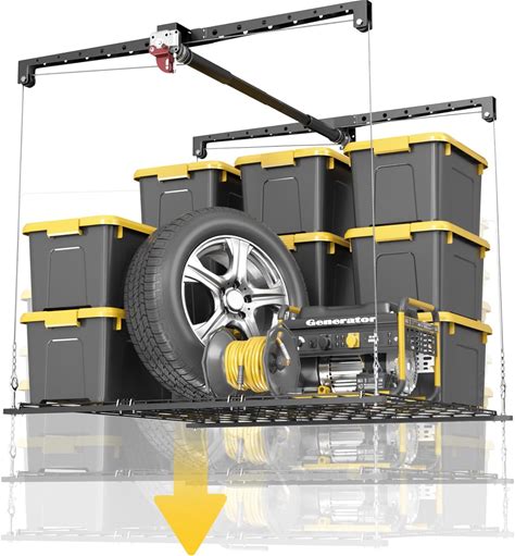 Overhead Garage Storage Rack For 10-12 ft Ceiling, Heavy-Duty 4x4 ft Ceiling Storage Racks With Safety Lock, Ideal For Garage Storage Mounted Lift System And Storage Organizer, 250Lbs Capacity(8-10 ft Ceiling)