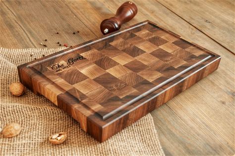 Walnut Cutting Board With Juice Groove, End Grain Cutting Board, Butcher Block Cutting Board