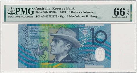 AUSTRALIA Banknote 10 Dollars 2003 PMG MS-66 EPQ Gem Uncirculated