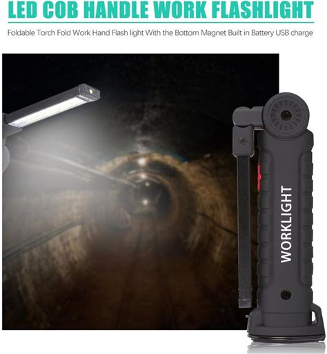 Portable Magnetic Work Light LED COB Work Light USB Rechargeable Repair Flashlight Inspection Work Lamp Working By 18650 Battery