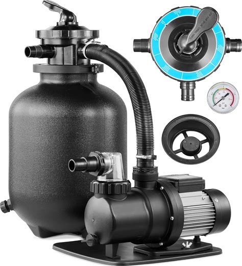 16in Sand Filter Pump For Above Ground Pool, 550W Sand Pump With 6-Way Multi-Port Valve,Pressure Gauge And Strainer Basket,3/4HP, Max 3169GPH For Pools Up To 20000GAL, Easy Installation, Blue(2.0HP)