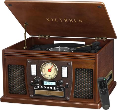 Victrola The Empire Mid-Century 6-In-1 Turntable Multimedia Center With Built-In Speakers C 3 Speed, Bluetooth Connectivity, Radio, Cassette CD Player, RCA Out, Headphone Jack (Farmhouse Walnut)(Espresso)